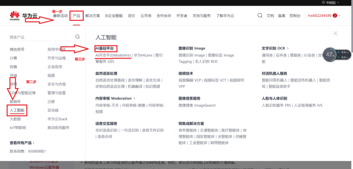 浏览器进入华为云,执行以下三步骤操作