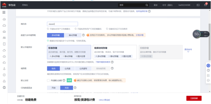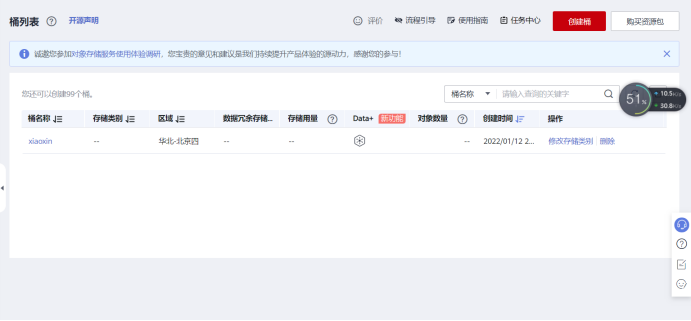 点击创建桶