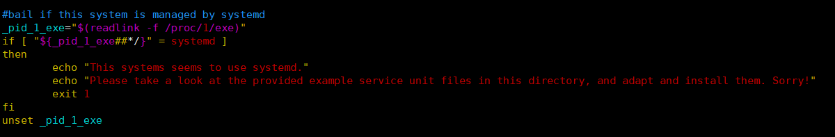 如果出现下面提示,需要将_pid_1_exe方法整个屏蔽掉再执行./install_server.sh就可以完成设置了