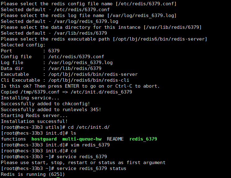 2.1.4.3 启动/停止命令是通过指令 service redis_6379 start/stop/stauts进行执行,redis_6379这类的是在/etc/init.d/xxx,是通过上面脚本配置的端口号自动生成的。