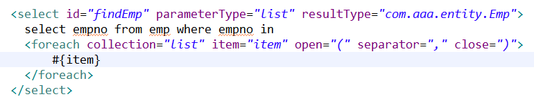 foreach元素的属性主要有 item,index,collection,open,separator,close。