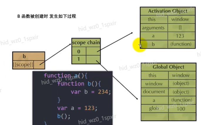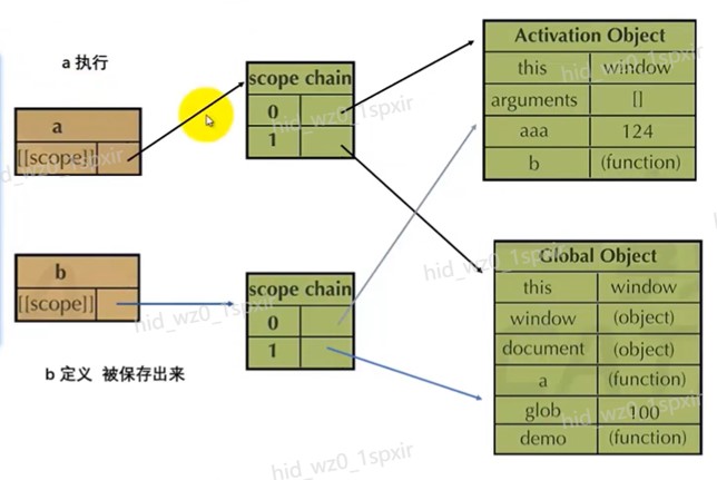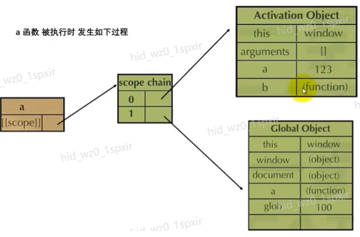 - 函数会创建一个AO,而且还会继承父函数的作用域下的所有东西,AO里面的aa是undefined,c是undefined