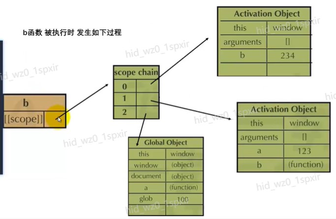 - 而最外层的作用域成为GO,GO里面现在就有a和b,而且值都是undefined