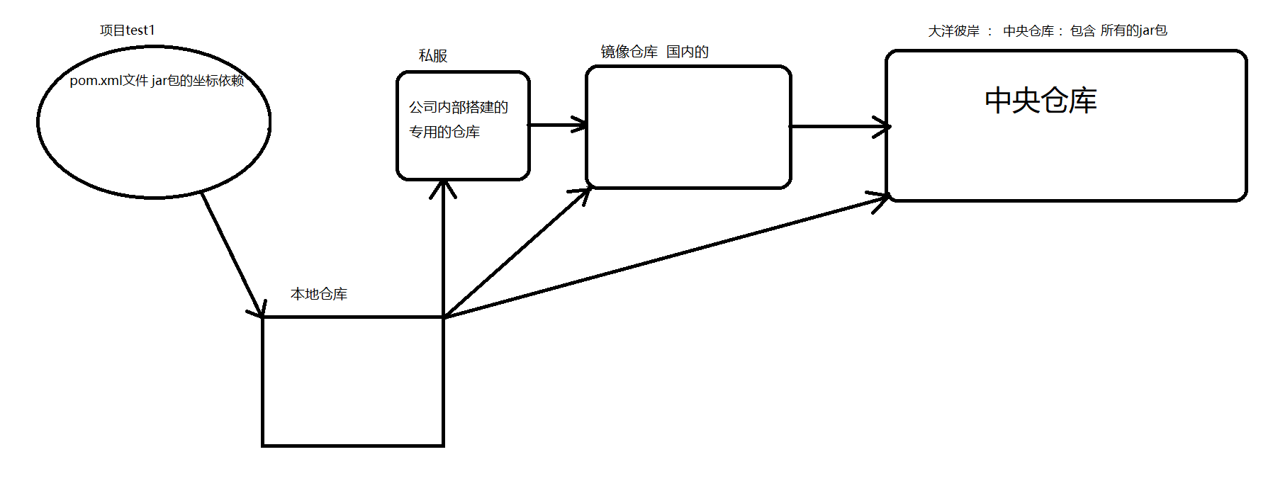 maven 的工作需要从仓库下载一些 jar 包,本地的项目 test1、等都会通过 maven软件从远程仓库(可以理解为互联网上的仓库)下载 jar 包并存在本地仓库,本地仓库 就是本地文件夹,当第二次需要此 jar 包时则不再从远程仓库下载,因为本地仓库已经存在了,可以将本地仓库理解为缓存,有了本地仓库就不用每次从远程仓库下载了。