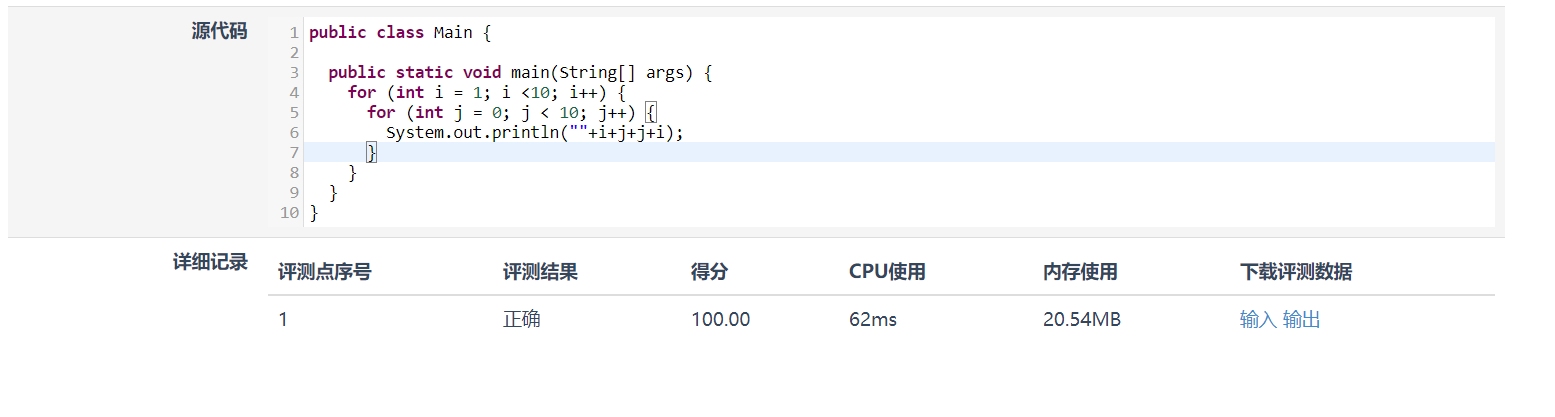 【摘要】 资源限制时间限制:1.0s 内存限制:512.0MB问题描述 1221是一个非常特殊的数,它从左边读和从右边读是一样的,编程求所有这样的四位十进制数。输出格式 按从小到大的顺序输出满足条件的四位十进制数。方法1(最优解)public class Main { public static void main(String[] args) { for (int i =...