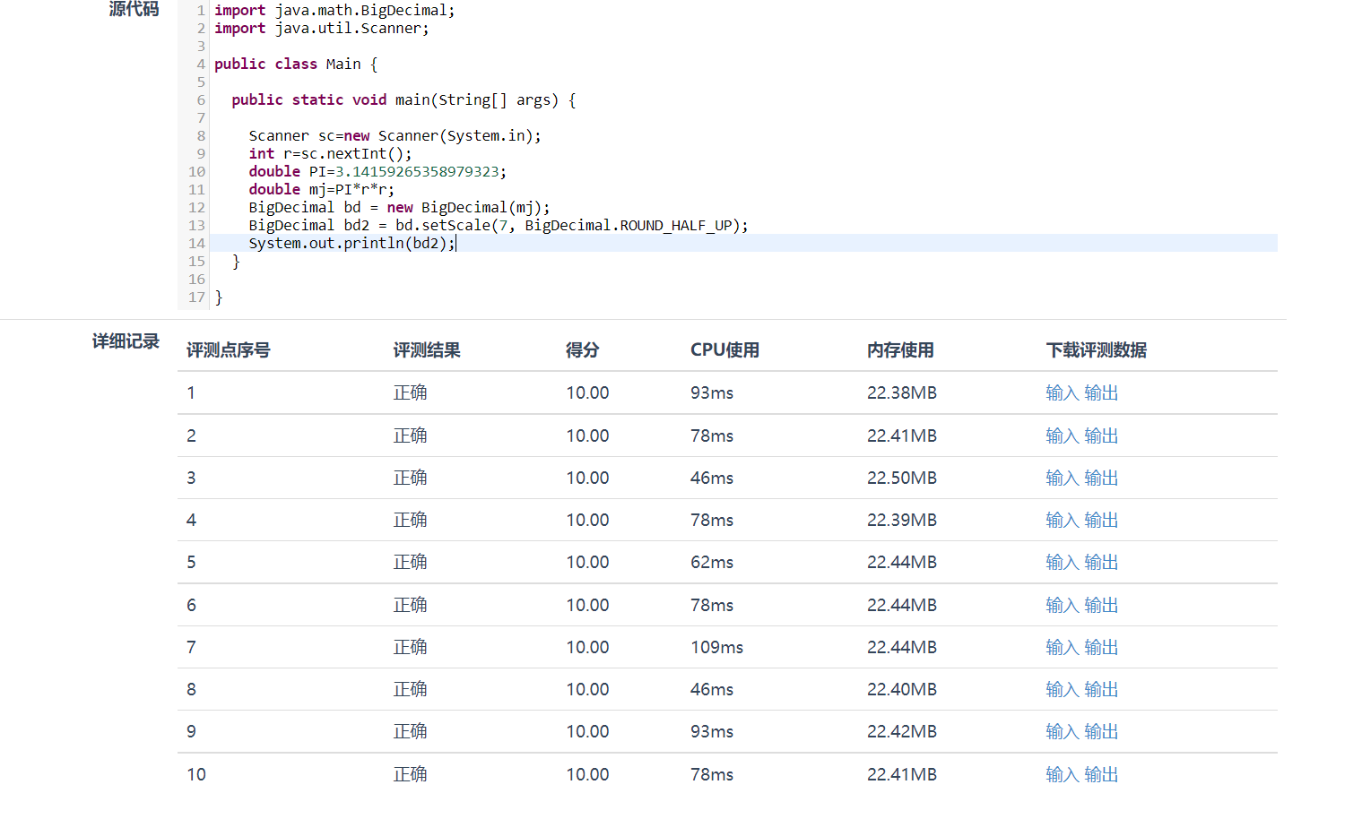 对于实数输出的问题,请一定看清楚实数输出的要求,比如本题中要求保留小数点后7位,则你的程序必须严格的输出7位小数,输出过多或者过少的小数位数都是不行的,都会被认为错误。