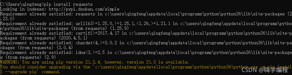 Requirement already satisfied: 表示之前已经安装过这个模块