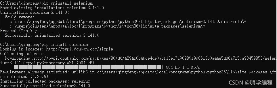 Successfully installed selenium-3.141.0 表示安装成功