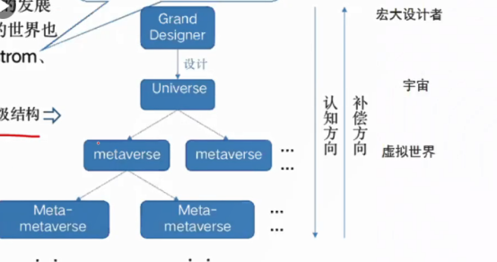 在认知上,各层级之间具有由上而下的单向性。例如,人类对现实世界( universe)的认知,只能接受一系列任意( arbitrary )的物理常数设定而不知其所以然,元宇宙中的虚拟人对于人类所设定的各种规则也只能被动接受。