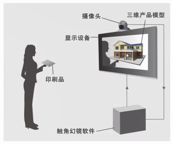 增强现实(AR) ,是虚拟现实技术的进一步拓展,它借助必要的设备使计算机生成的虚拟环境与客观存在的真实环境( Real Environment ,简称RE )共存于同一个增强现实系统中,从感官和体验效果.上给用户呈现出虚拟对象与真实环境融为-体的增强现实环境。增强现实技术具有虚实结合、实时交互、三维注册的新特点,是正在迅速发展的新研究方向。