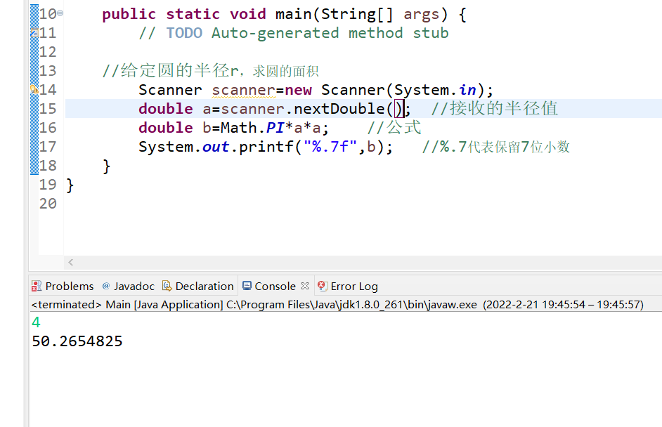double a=scanner.nextDouble(); //接收的半径值