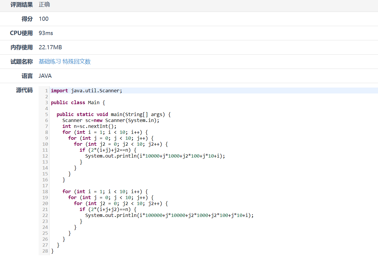 蓝桥杯BASIC-9——特殊回文数 关键字:回文数 循环 条件语句