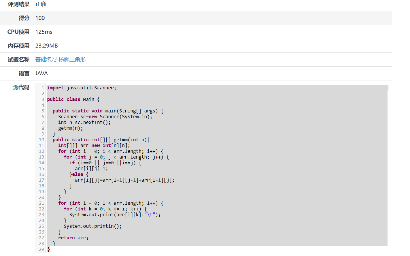 蓝桥杯BASIC-6——杨辉三角形 关键字:基础练习 二维数组