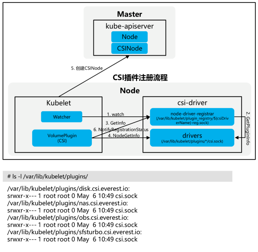 5.Kubelet根据收集到的信息,创建CSINode信息;