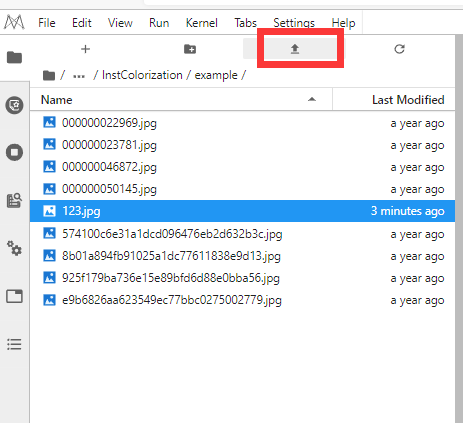 将本地图片,通过菜单栏的upload files按钮,上传到example文件夹下
