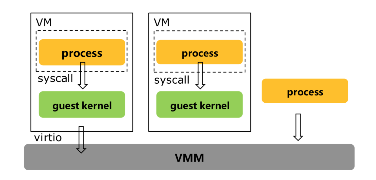 2)轻量化,为了达到和容器近似的使用体验,需要对各组建进行裁剪,达到轻量化和启动加速的目的,对于hypervisor,去除通用虚拟化的各种不必要的设备、总线等。对于guest kernel,也裁剪了大量不需要的驱动和文件系统模块。而运行在虚拟机中的1号进程,一般为kata-agent,资源占用可小于1MB。
