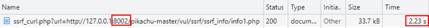 在我们利用SSRF漏洞去攻击内网服务器时,并不知道内网中有什么样的应用和IP,也不知道开放了什么端口以及端口对应的服务,此时我们可以利用SSRF漏洞先对内网做IP+端口的扫描。端口的开放、关闭状态不同,响应的返回时间也会有差别,据此就可以判断端口的开放状态。