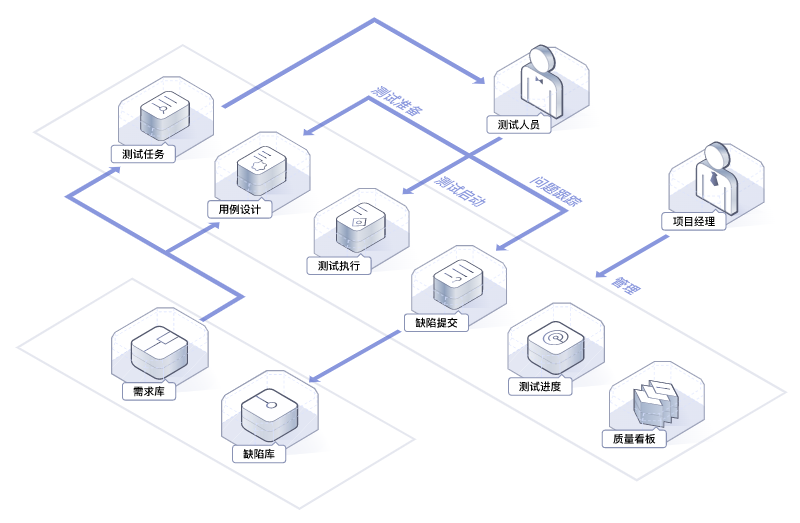 在软件测试和质量管理场景中,支持不同规模团队敏捷测试流程,以需求驱动的测试杜绝漏测、误测,提高产品的测试率和覆盖率;测试需求、用例/套件、缺陷、测试结果数据相互关联,双向追溯,让开发测试不同角色及时高效协作;支持多维度产品质量看板,实时统计查看测试进度、缺陷、测试需求覆盖率,全方位评估产品质量,保障产品的高效验收。