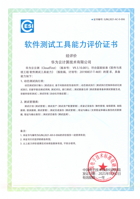 权威可信 | 华为云云测通过中国电子技术标准院软件测试工具能力评价
