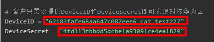 # 客户只需要提供DeviceID和DeviceSecret即可实现对接华为云