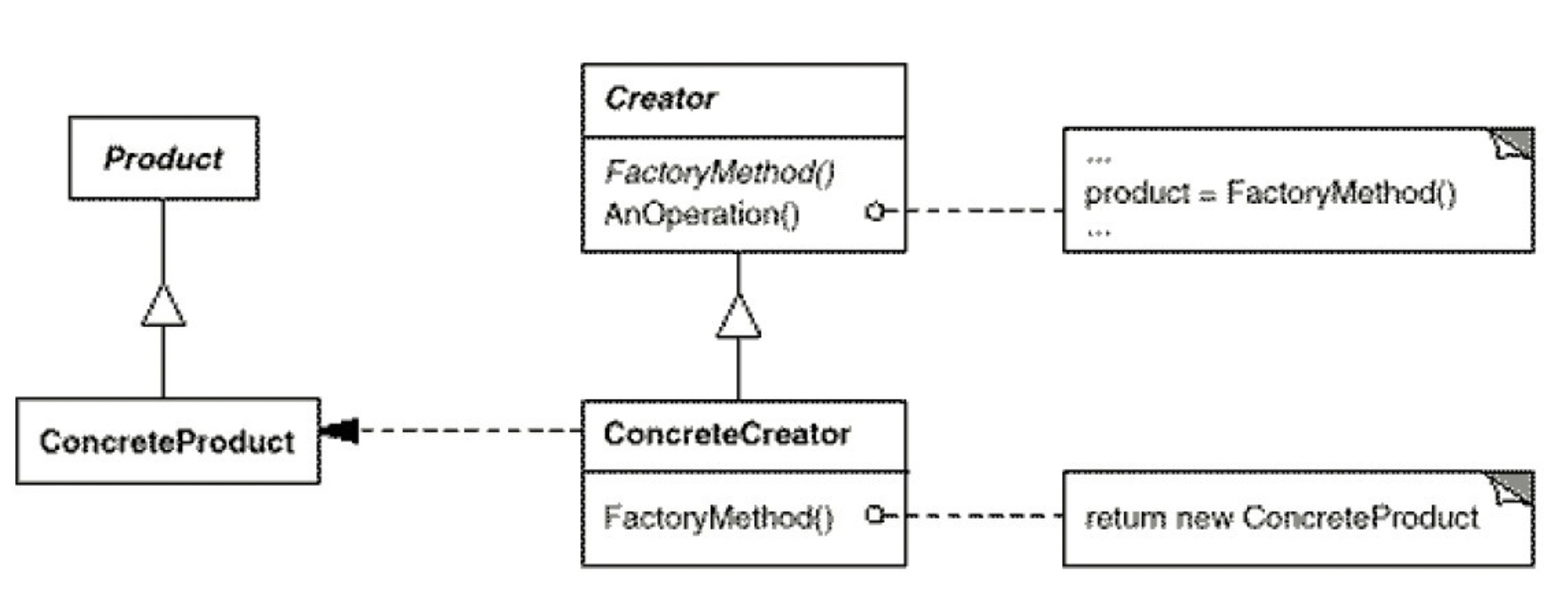 - Factory方法的创建是通过继承而不是通过实例化来完成的