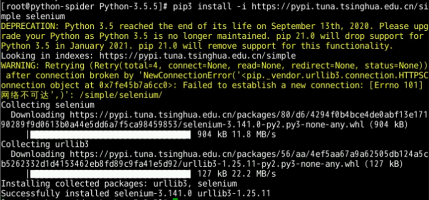 pip3 install -i https://pypi.tuna.tsinghua.edu.cn/simple selenium