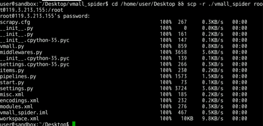 cd /home/user/Desktop && scp -r ./vmall_spider root@EIP:/root