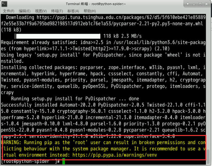 pip3 install -i https://pypi.tuna.tsinghua.edu.cn/simple scrapy