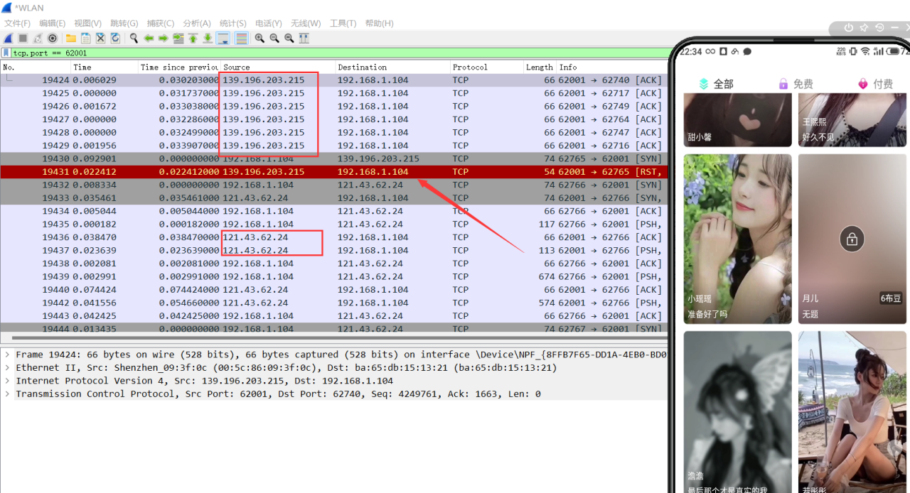 抓包看到SDK跟分配的节点203.215进行通讯,在IP为203.215的节点里面将加密隧道程序断开,模拟节点被攻击产生无法访问的情况。抓包看到SDK迅速切换到分配给用户的第二个可用IP62.24所有的切换都是无感知进行的。为了避免攻击者重复拉取全部节点池,SDK的验证端做了身份识别,token、deviceid等方式进行验证。每个用户分配的一组3个ip都不会重复,如果攻击者打死分配给他的节点IP,也只会影响到黑客自己。