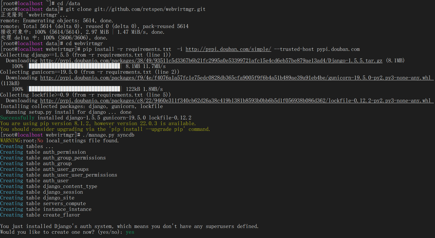 git clone git://github.com/retspen/webvirtmgr.git 或 git clone https://github.com/retspen/webvirtmgr.git