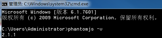 配置完毕,在控制台输入 phantomjs -v 查看程序对应版本。