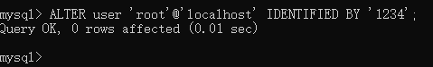 ALTER user 'root'@'localhost' IDENTIFIED BY '1234';修改默认密码为1234