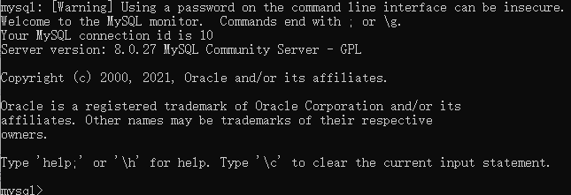 mysql -uroot -p1234后出现如下信息,表示成功连接MySQL数据
