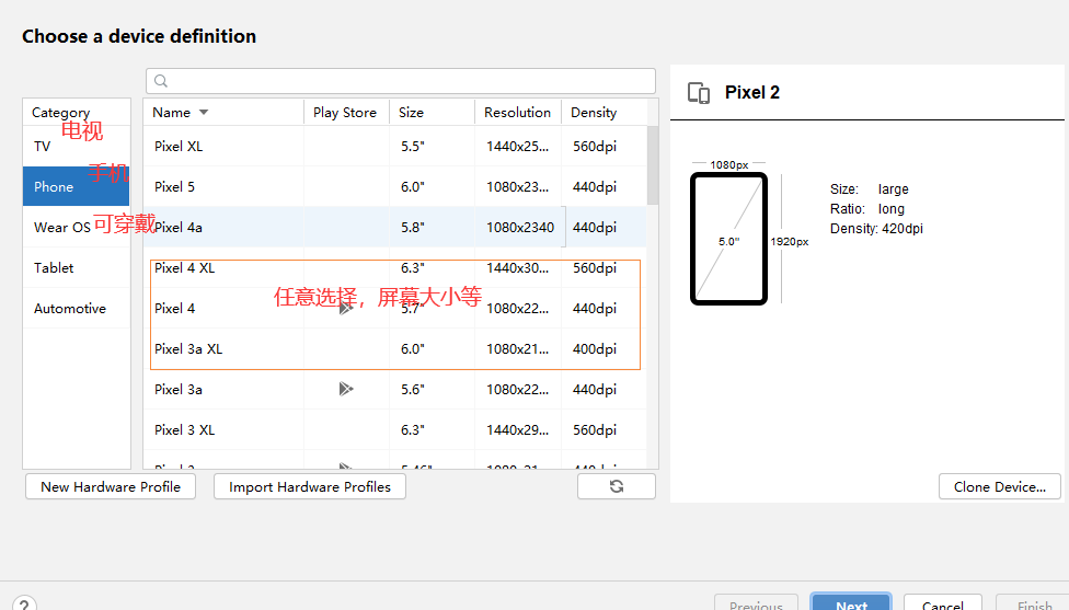 4. 选择自己的手机屏幕尺寸,进行安装下载。