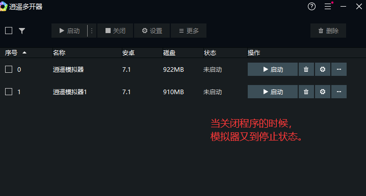 停止到程序窗口之后,逍遥多开窗口,又会出现模拟器窗口界面。