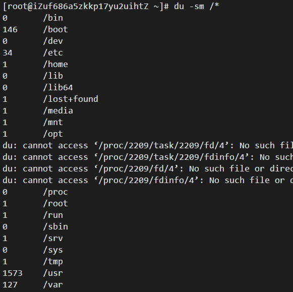 du -sm /*