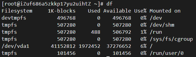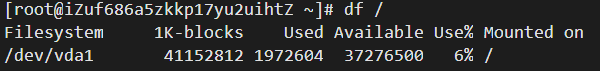命令语法:df [参数] [目录或文件名]