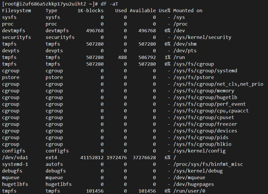 df -aT
