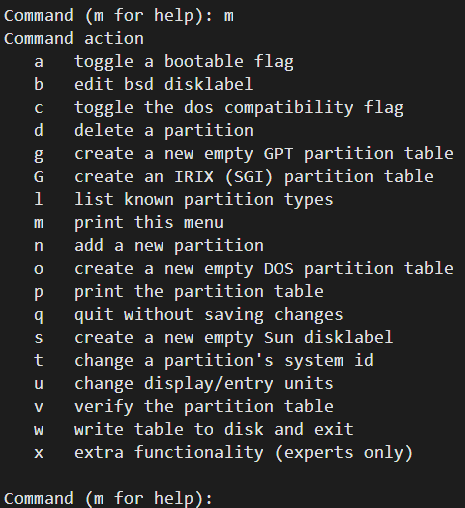 | t | 改变一个分区的系统 ID |