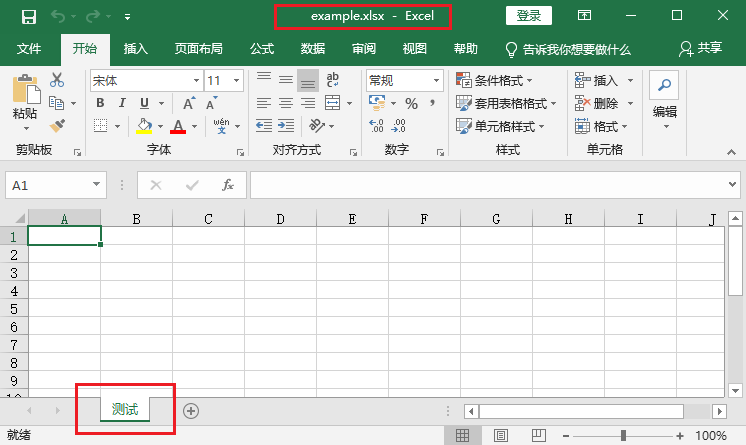 接下来的代码将会创建一个 Excel 文件,并将第一个默认 sheet 修改为【测试】