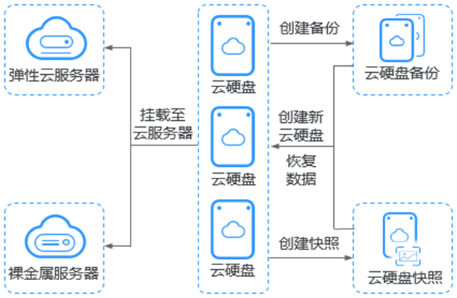 | 云硬盘支持备份、快照等数据备份保护功能,为存储在云硬盘中的数据提供可靠保障,防止应用异常、黑客攻击等情况造成的数据错误。 |