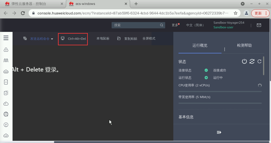 选择相应的windows弹性云服务器ECS,点击远程登录。