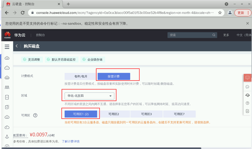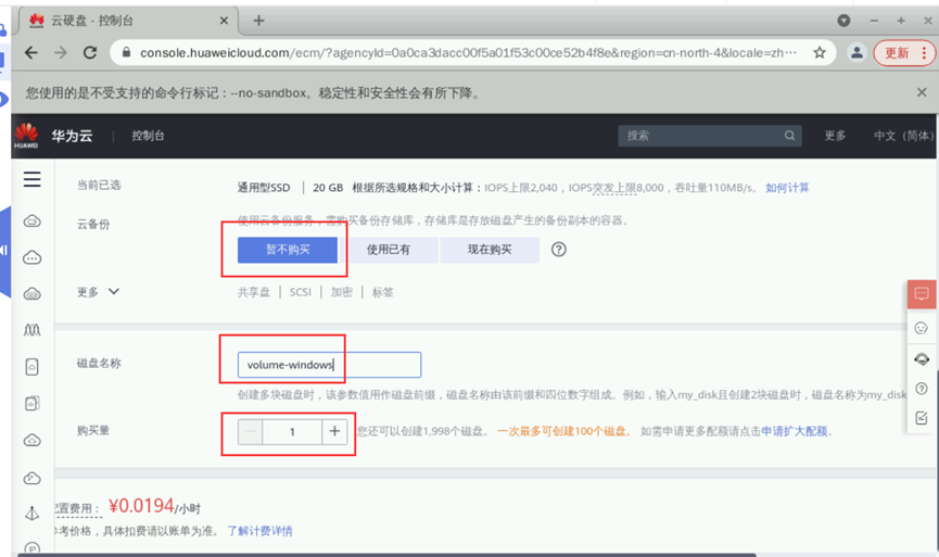 - 【磁盘规格】:通用型SSD(若无此规格,可选界面存在的规格)
