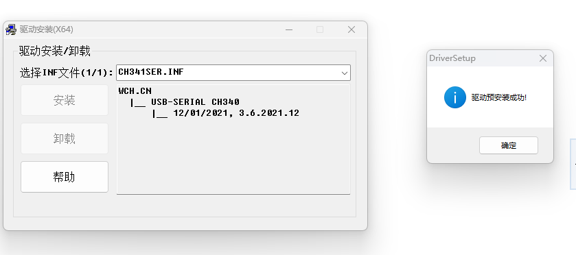 当然在这之前需要先安装驱动:运行 CH341SER.exe