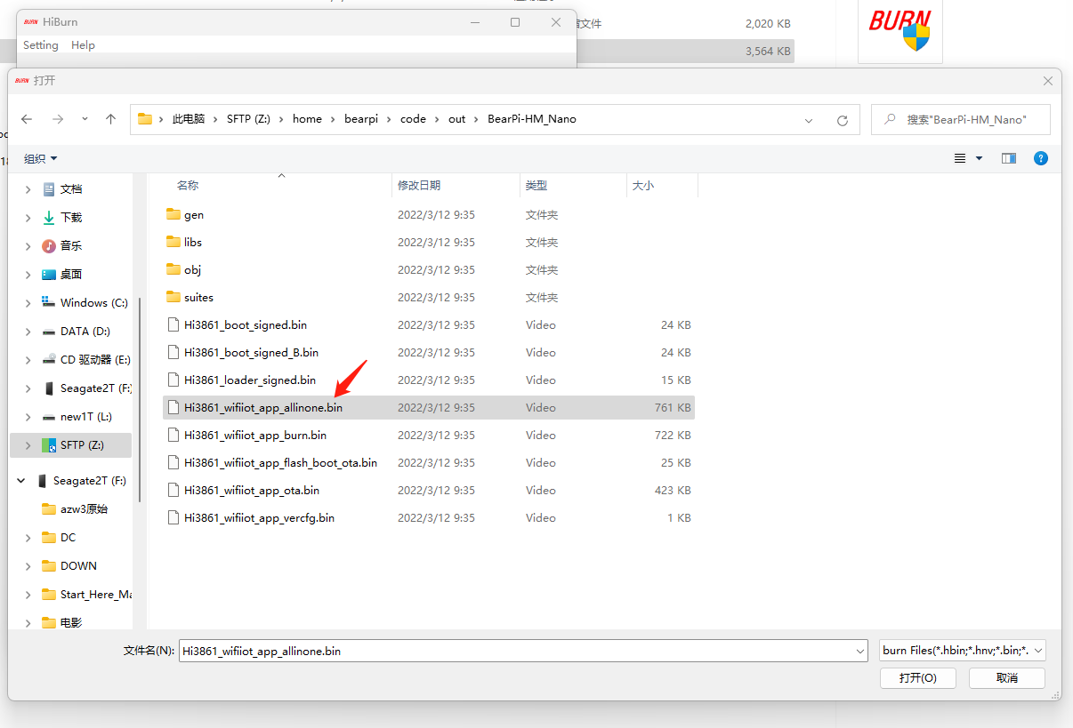 打开Z盘可以看到,编译好的代码在 code/out/BeaiPi-HM_Nano目录下: