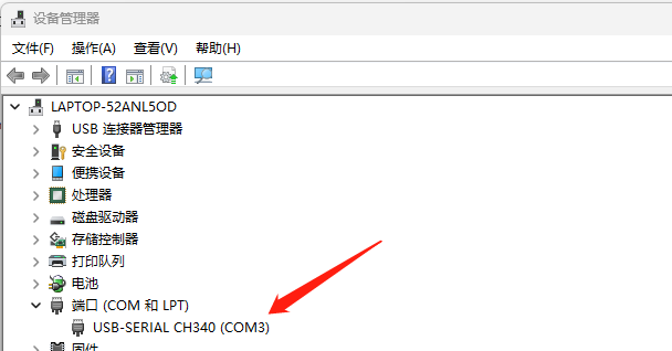 刷新之后可以看到CH340的端口是COM3