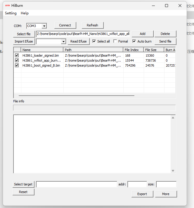 然后使用HiBurn软件烧录上面任意一个allinone的bin