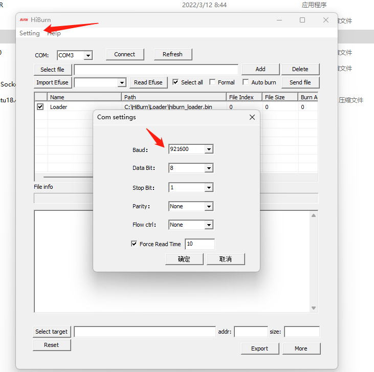 打开HiBurn烧录软件,点击设置: