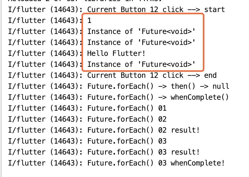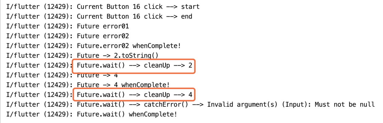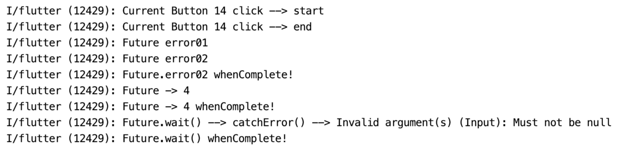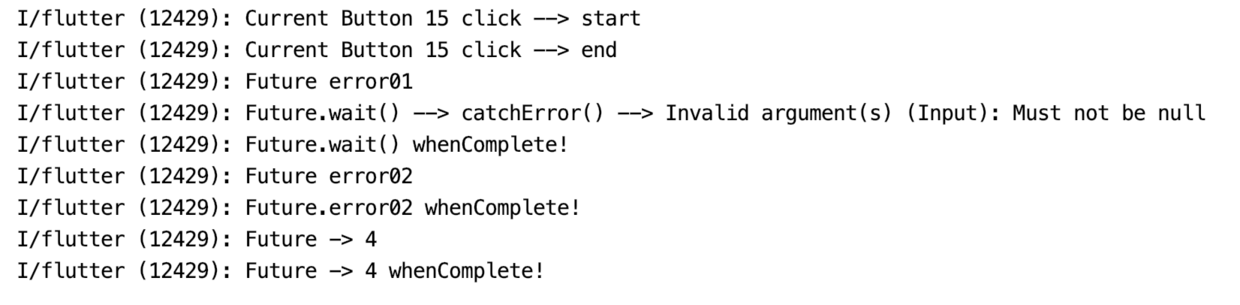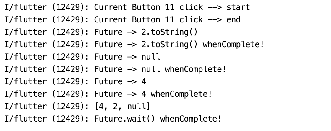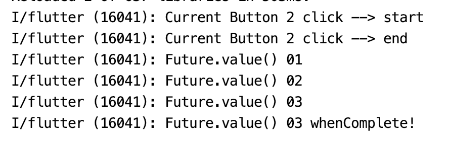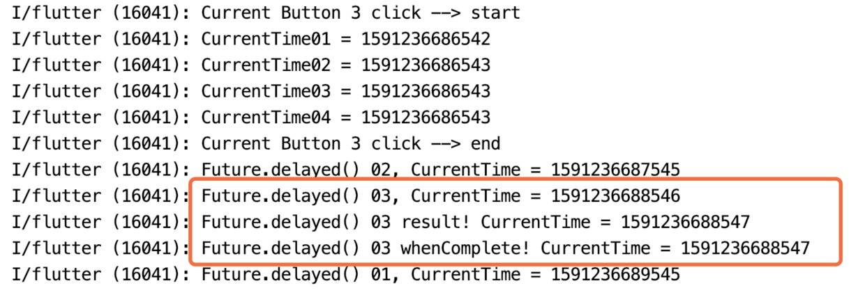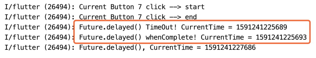 .whenComplete(() => print('Future.delayed() whenComplete! CurrentTime = ${DateTime.now().millisecondsSinceEpoch}'));