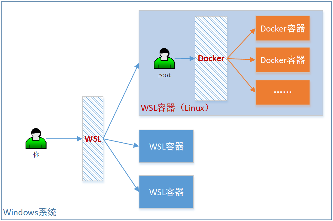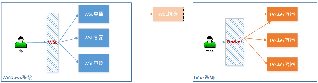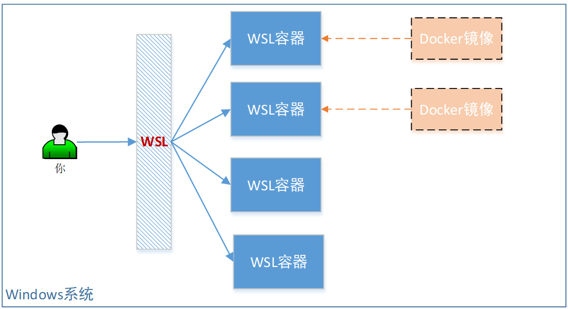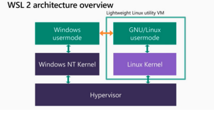 ps:上面提到的“容器”,实际是安全容器(即:虚机),WSL2内部架构如下: